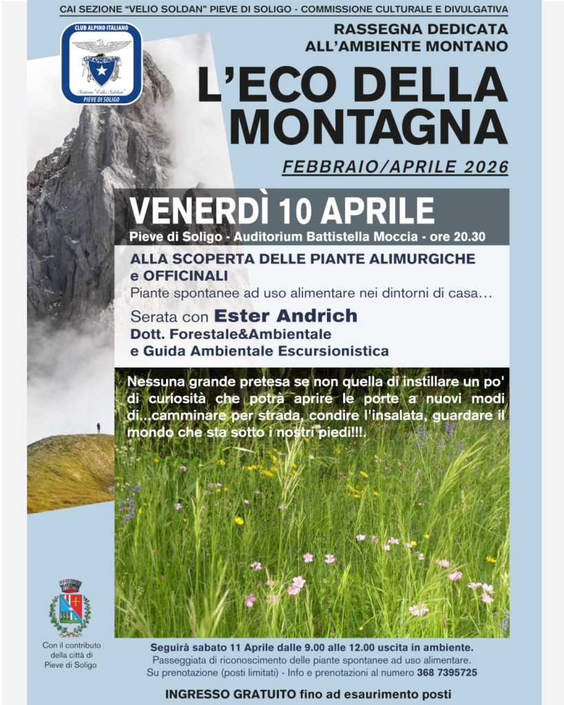 Per L’ECO DELLA MONTAGNA – rassegna di eventi dedicati all’ambiente montano – abbiamo voluto dedicare una serata alla scoperta delle piante alimurgiche e officinali.
